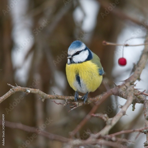 Blue tit in natural environment, Danubian forest, Slovakia, Europe