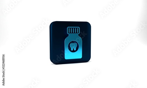 Blue Toothache painkiller tablet icon isolated on grey background. Tooth care medicine. Capsule pill and drug. Pharmacy design. Blue square button. 3d illustration 3D render