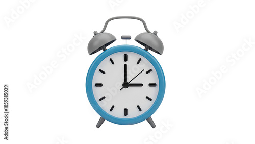 alarmclock, clock, time, bell, vintage, retro, wake up, morning, blue, grey, object, device, mechanical, dial, hand, marker, icon, symbol, illustration, isolated, white background, simple, minimalist