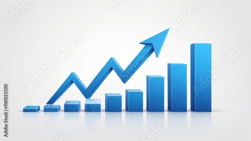 Blue upward arrow symbol rising over bar graph on white background, representing business growth, success, and progress. Generative AI