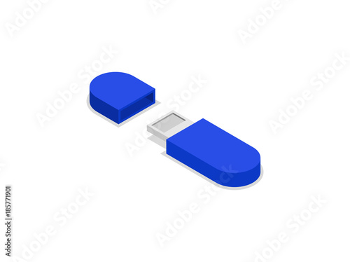 Blue usb drive isometric 3D icon. Digital technologies, computer device, multimedia equipment vector illustration