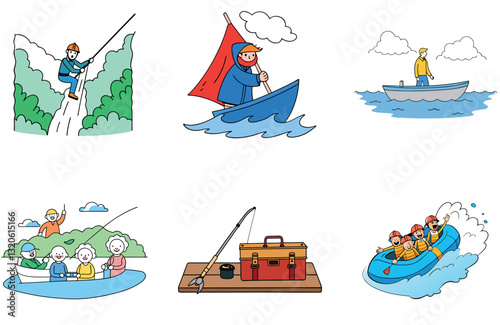 Blue Water Fishing. Rod Reel Tackle Bundle Collection Icons