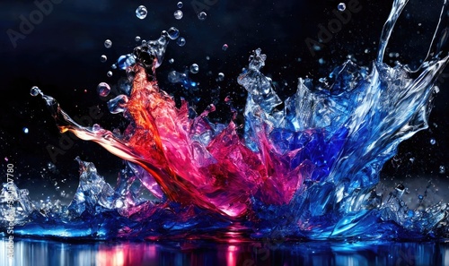 Blue Water splashes on black - abstract freeze frame, Generative AI.
