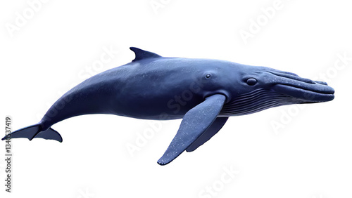 Blue Whale Swimming Pose Digital Illustration with Realistic Marine Details, Giant Ocean Mammal Isolated on Transparent Background for Nature Projects