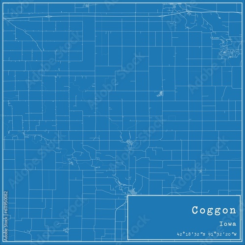 Blueprint US city map of Coggon, Iowa.