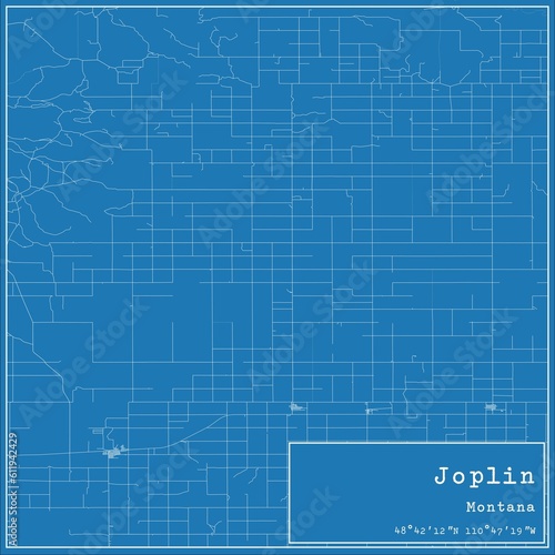 Blueprint US city map of Joplin, Montana.