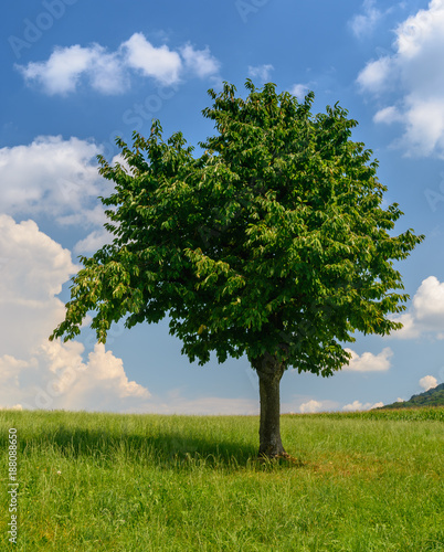 tree, heaven, field, countryside, nature, grass, spring, summer, meadow, blue, environment, oak, plant, single, horizon, cloud, countryside, farming, sun, rural, season, 1, land, lonely
