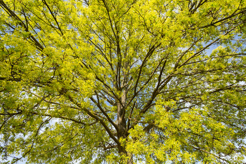 Blühender Spitzahorn (Acer platanoides) im Frühjahr