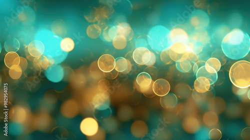 Blur bookeh gold lights or flashes on a aqua color background