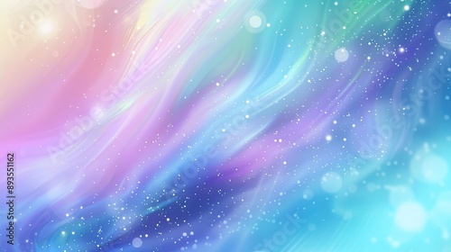 Blurred abstract background with soft pastel gradient of blue, purple, and green hues blending seamlessly for a holographic effect.