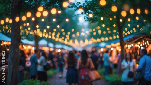 Blurred abstract image of a festival in a garden with bokeh for background use.
