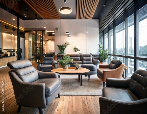 blurred, background, modern, lounge, elegant, grey, leather, armchair, professional, interior, office, corporate, creative, workspace, design, comfort, stylish, business, architecture, chair, furniture, room, space, technology, meeting, collaboration, relaxation, break, casual attire, contemporary, indoor, desk, nobody, lifestyle, sharpened, light, window, urban, chic, minimalist, home, innovation, startup, cosy, sophisticated, bright, empty