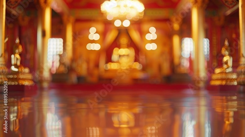 Blurred Buddhist temple interior with no people, classical interior, light colors, background, wallpaper