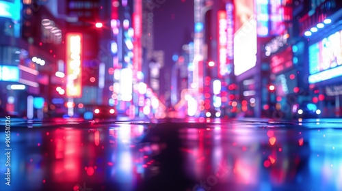 Blurred City Street with Neon Lights