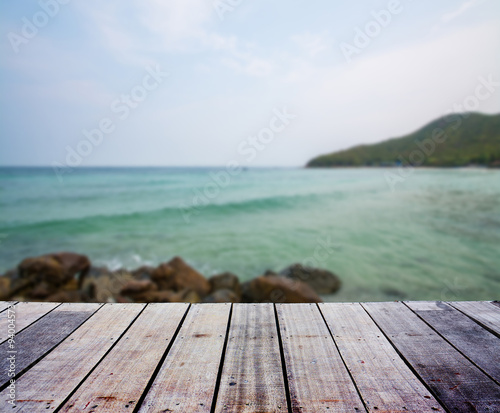 Blurred landscape with wood terrace