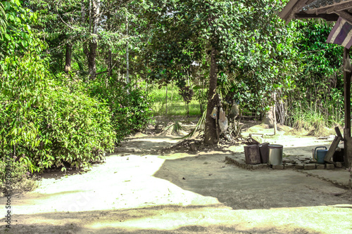 Blurred nature background of home garden vegetables (eggplant, guava) can be used to cook.