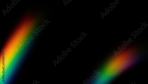 Blurred rainbow refraction overlay effect. Light lens prism effect on black background. Holographic reflection, crystal flare leak shadow overlay. Colorful rainbow disco ball light