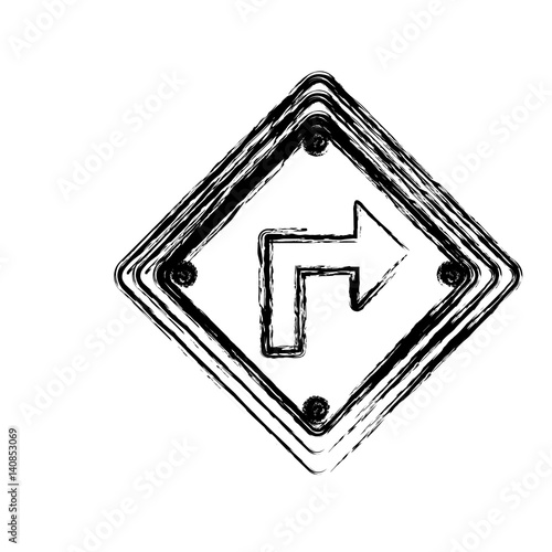 blurred silhouette diamond frame turn right traffic sign vector illustration
