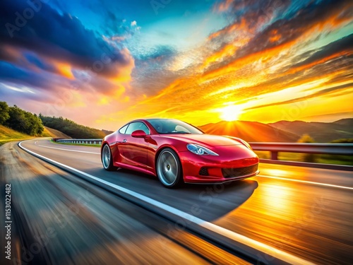 Blurred Speed: Candid Shot of a Fast Car Racing on a Highway