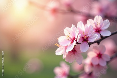 Blurred spring blossoms, sunlit bokeh, pastel hues , blossoms, modern, design