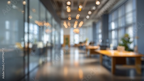 office, interior, workspace, modern, design, blurry, abstract, building, architecture, decor, ambient, lighting, industrial, style, space, room, hallway, corridor, table, chair, window, glasses, wall, floor, ceiling, lamp, light, furniture, contemporary, professional, business, corporate, environment, atmosphere, aesthetic, setting, locale, location, place, area