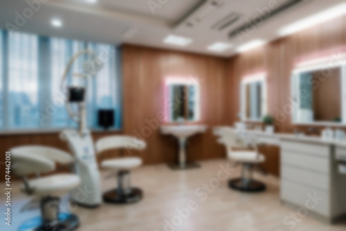 blurry beauty clinic, interior of beauty equipment in clinic with modern theme, bright lighting, blurry beauty clinic wallpaper, facial skin.