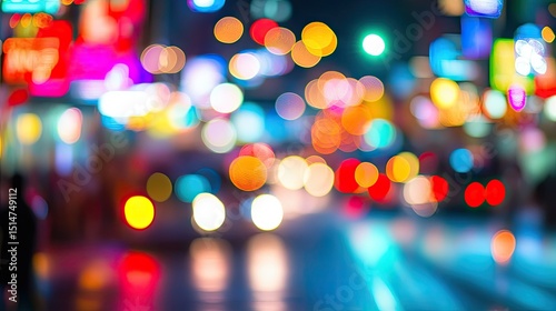 Blurry city lights at night.