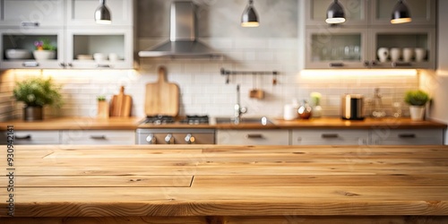 Blurry kitchen counter background with wooden table for product display, kitchen, counter, background, wooden, table, product