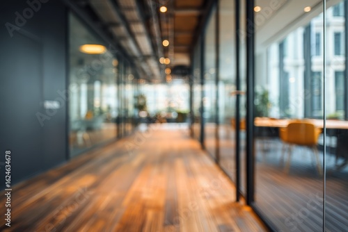 modern, office, hallway, corridor, interior, blurred, business, contemporary, workspace, glasses, window, wood, floor, light, industrial, open, meeting, reception, chair, table, natural, bright, daylight, design, architecture, urban, city, view, professional, corporate, clean, minimalist, stylish, elegant, warm, smooth, cleanliness, professionalism, modernism, functional, sophistication, dynamic, empty, focused