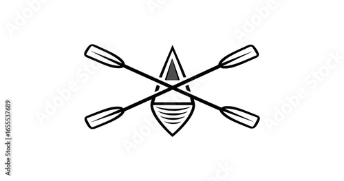 boat, oar, rowing, graphic, design, symbol, logotype, branding, silhouette, black-and-white, illustration, vector, symmetric, flat, simple, icon, water sport, adventure, travel, activity, isolated, background, copy space, line art, image, design element, symbolism, style, art, element