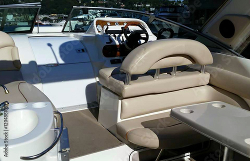 boat, transportation, travel, transport, sea, sport, water, yacht, interior, cockpit, captain, chair, deluxe, leather, table, sink, windscreen, steer, lake, ocean, exciting