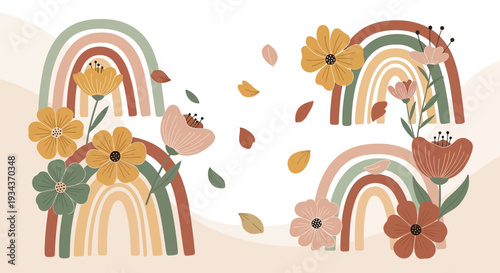 rainbow, floral, illustration, pastel, colours, rainbow, art, flower, decor, childcare center, greeting, card, spring, flower, summer, bloom, autumn, leaf, winter, blossom, minimalist, botanical, graphic, design, flat, modern, abstract, soft, whimsical, bohemian, style, artistic, element, decorative, creative, organic, shape, natural, fall, arc, flocked, happy, cheerful, gentle, earthy, tone, stylised