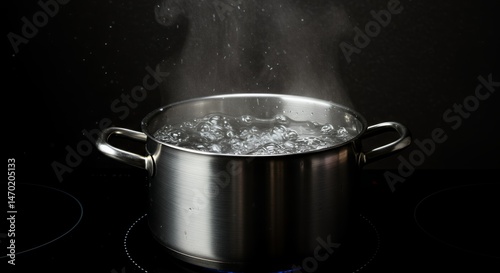 water, boiling, steam, pot, cooking, kitchen, heat, stainless, steel, black, background, studio, shot, liquid, hot, cook, food, kitchen utensile, temperature, vapour, nobody, indoor, household, preparation, domestic, metal, appliance, equipment, drink, ingredient, utensil, closeup, simple, still, life, surface, energy, transformation, refreshment, wellness, hygiene, macro, detail, purity, clean, freshness, cookware, rising, point