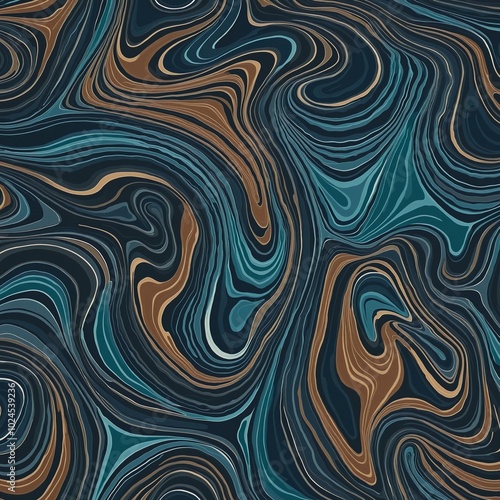 Bold Abstract Pattern with MidnightBlue, Cyan, and SaddleBrown Organic Shapes