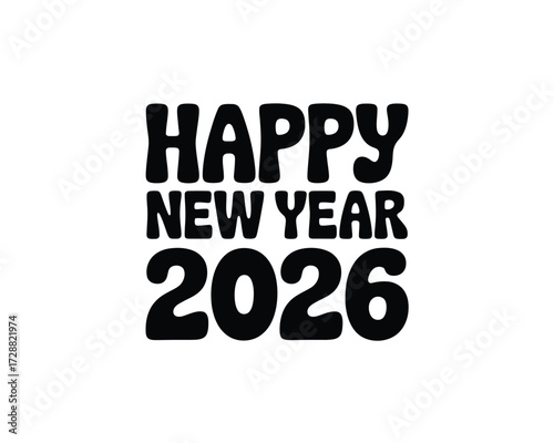 Bold black and white "happy new year 2026" vector illustration for festive celebrations silhouette vector illustration white background