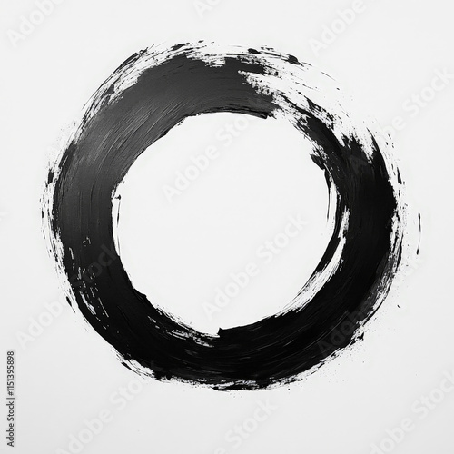 bold black brushstroke forms an incomplete circle on a clean white background, evoking a sense of balance, simplicity, and artistic expression. The texture highlights imperfections and creativity