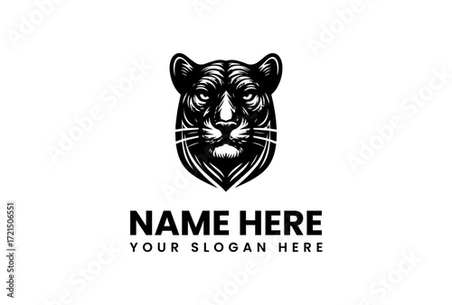 panther, head, logotype, design, black, white, animal, felino, cat, predator, wild, nature, wildlife, graphic, illustration, symbol, emblem, icon, brand, identity, business, company, creative, modern, elegant, stylish, powerful, strong, bold, fierce, confident, detailed, intricate, texture, line, art, drawing, vignetting, silhouette, face, eye, ear, whisker, mouth, nose, teeth, fur, mane, roar