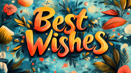 Bold, blocky lettering in vibrant colors spells out "Best Wishes" for a modern greeting card.