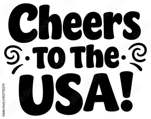 Bold. celebratory graphic design showcasing the phrase "Cheers to the USA!" in a retro font style. Excellent for apparel. promotional items. and advertising celebrating US pride.