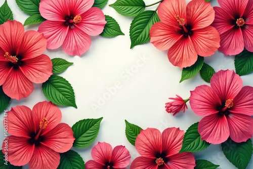 Bold hibiscus blooms, stylized design, repeating motif , background, illustration