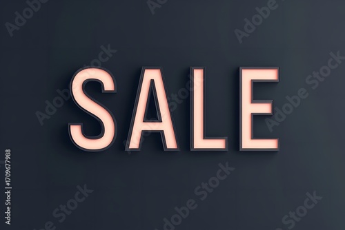 Bold illuminated SALE sign glows against a dark background inviting customers to discover amazing deals and promotions, Generative AI.