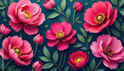 Bold peony & poppy blooms, vibrant seamless design, vibrant, bold, seamless