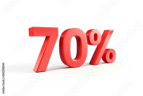 Bold red 70% symbol standing out against a plain white background. marketing, discounts, sales, and promotional events.