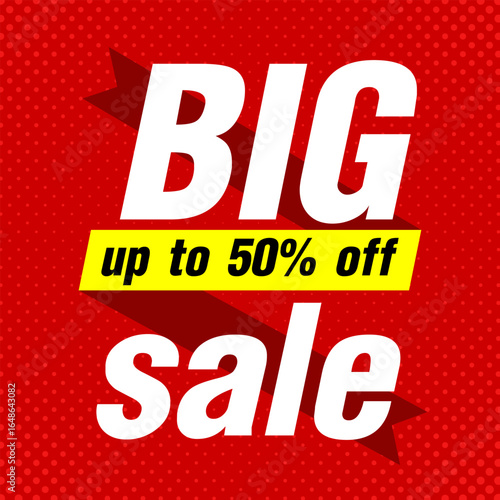Bold Red Big Sale Banner with Yellow Highlight Offering Up to 50% Off
