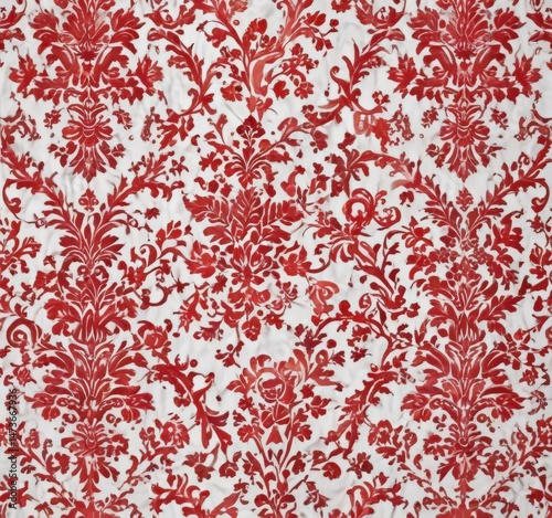 Bold red damask, white background, classic wallpaper , aged, decorative