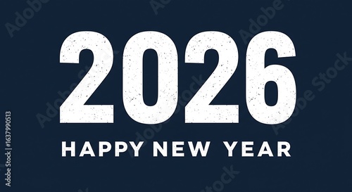 2026, happy, new, year, bold, textured, modern, minimalist, simple, greeting, celebration, holiday, festive, eve, jan, grunge, distressed, stamped, rough, font, typography, number, text, design, graphic, illustration, banner, card, poster, invitation, background, dark, blue, white, vector