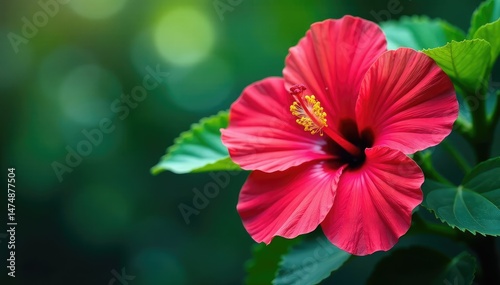 Bold tropical hibiscus, lush leaves, vibrant color palette, wall, pattern, tropical