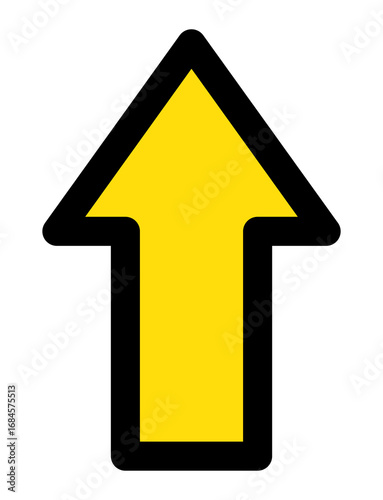 Bold yellow upward arrow with black border, PNG with transparent background, flat growth icon for dashboards, infographics, and navigation flows