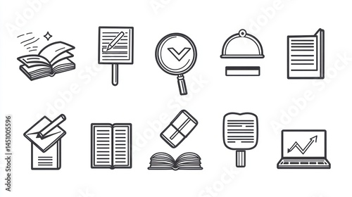 icon, book, education, library, reading, learning, study, cognition, design, graphic, illustration, vector, simple, outline, minimalist, collection, educational, symbol, technology, laptop, digital, document, notepad, checklist, magnifying, search, research, presentation, menu, writing, paper, open, closed, information, datum, analysis, progress, growth, business, online, marketing, interactive