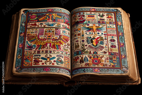 codex, symbol, book, story, illustration, culture, sacred, life, tradition, heritage, spiritual, art, vibrant, script, death, decorated, bright, paint, page, root, mexican, celebration, mythology, ancient, story, manuscript, design, colourful, bird, god, festival, cosmic, detail, legend, religion, tribute, ceremonial, history, belief, illustrated